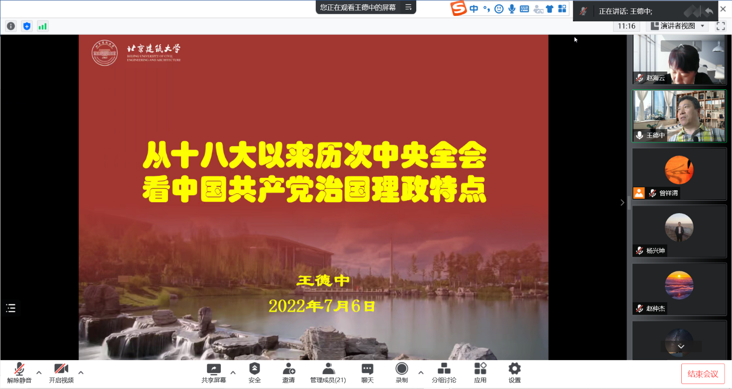赵海云同志总结强调,王老师的讲解深入浅出,内容丰富,对推动扑克王 中心工作有着重要的启发意义,后续各支部各单位要继续组织开展学习研讨,并将北京市第十三次党代会精神学习作为今后一段时间的重要学习内容,不断创新形式,学做结合,知行合一。