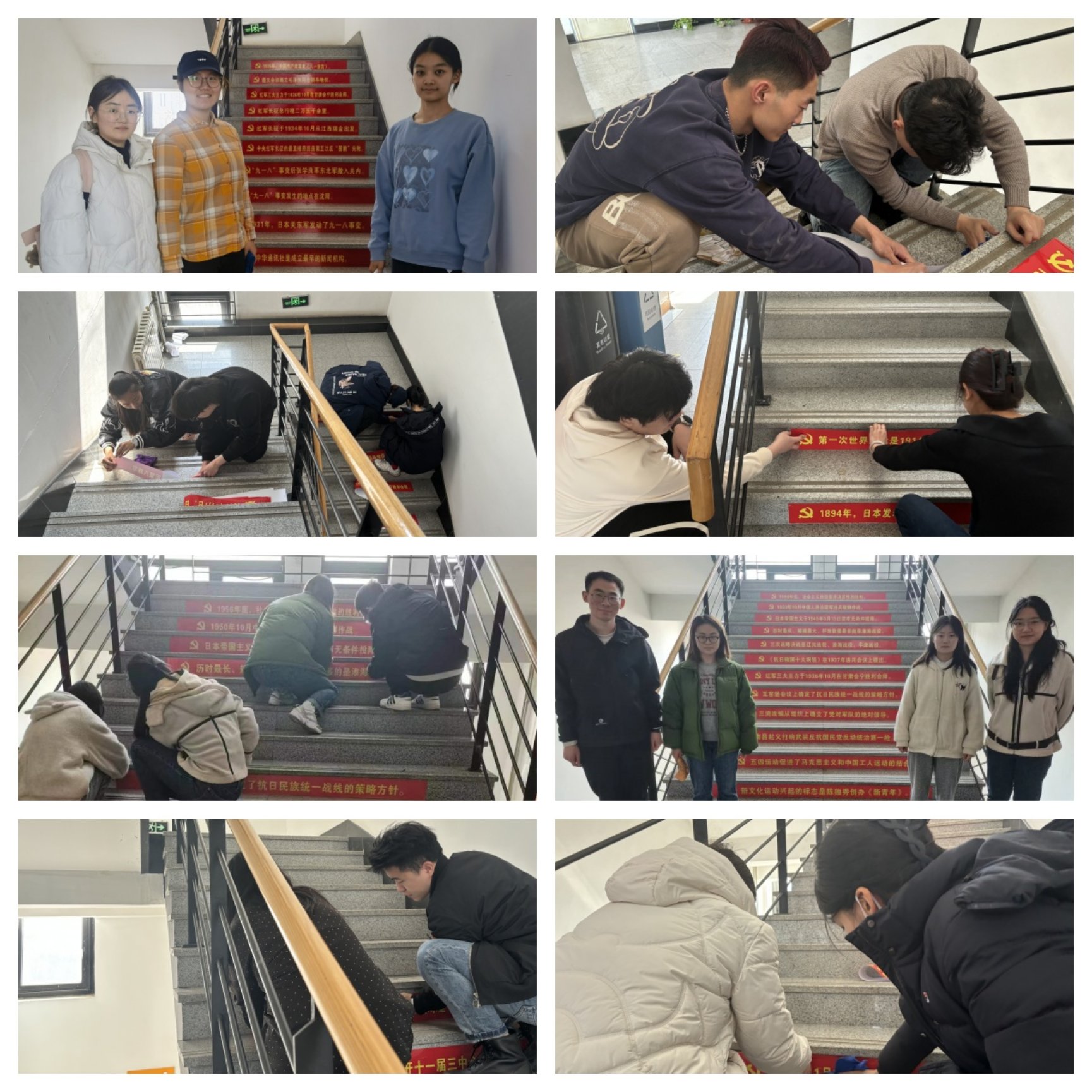 此次张贴的“党史知识小百科”标语均由学生党员收集整理,经扑克王 审核后统一制作。活动现场,学生党员们将一张张党史知识标语认真细致的粘贴在扑克王 楼A座东、西门楼梯剃面,营造浓郁学习氛围,使师生上下楼梯见知识,发挥党史以史鉴今、资政育人的作用。
