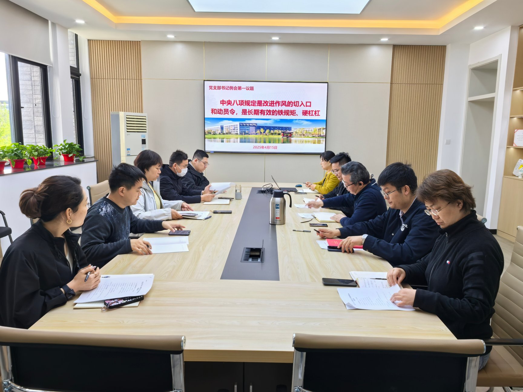 会议聚焦第一议题学习,赵海云领学《习近平关于加强党的作风建设论文摘编》中“中央八项规定是改进作风的切入口和动员令,是长期有效的铁规矩、硬杠杠” 的重要论述,强化党员干部对作风建设重要性的深刻认识。