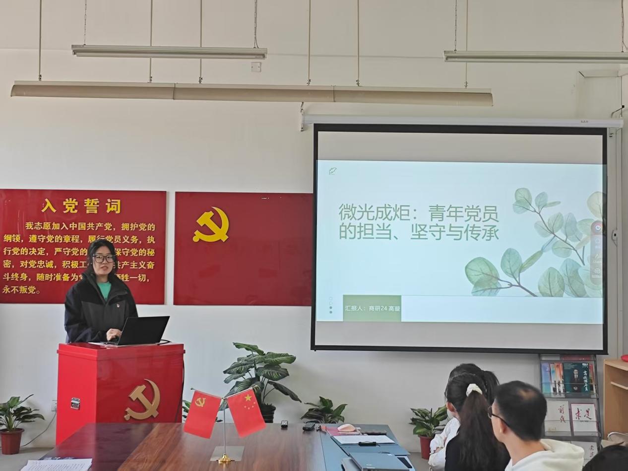 工商管理研究生党支部的高璇以“微光成炬:青年党员的担当、坚守与传承”为题,围绕自己如何做好学生党支部工作,讲述新时代青年党员从践行者到传播者的成长轨迹,用青春行动诠释了“强国有我”的铮铮誓言,为基层党组织建设注入了可持续发展的青春活力。