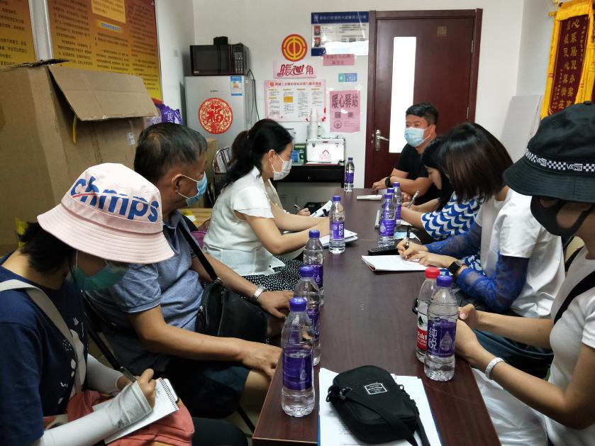 (1)与社区工作人员座谈。7月24日上午9:00,调研小组与新街口街道西里四区社区张书记座谈,了解如意里小区11号楼的改造计划。该项目为2019年北京市西城区老旧小区改造项目,已经完成民意调查和施工方案设计,将于2020年7月27日开始进场施工。调研小组详细询问了该项目在收集居民意见时遇到的问题及解决方法,还和张书记交流了正式改造施工后可能会遇到的困难及预备解决方案。