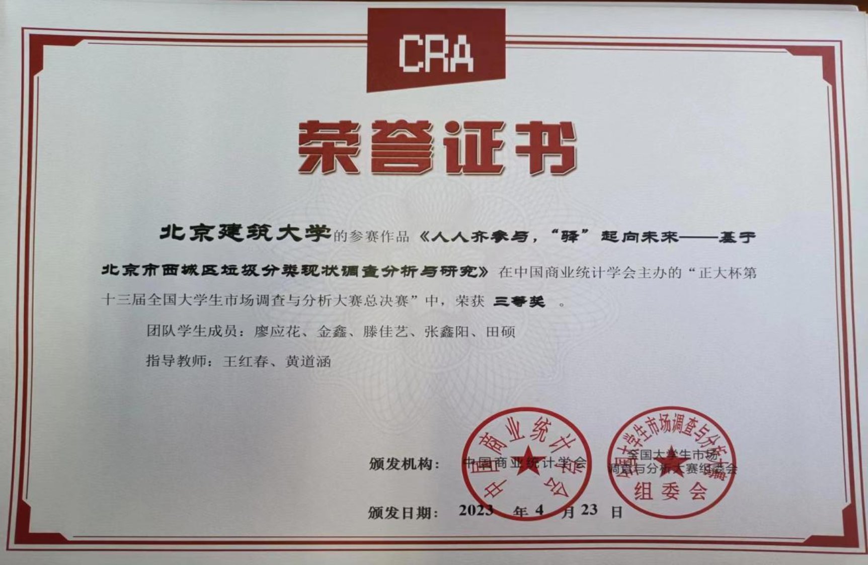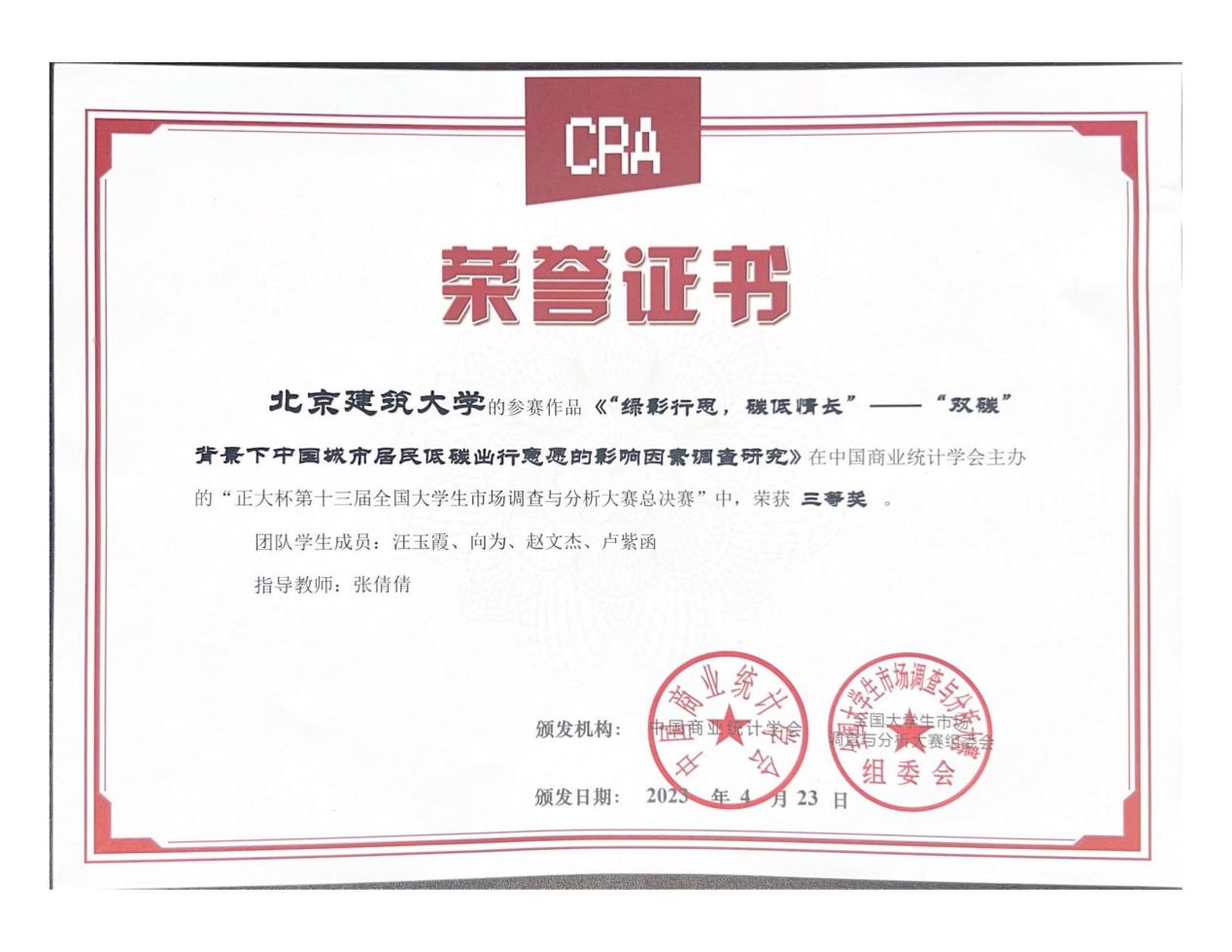 近日,“正大杯”第十三届全国大学生市场调查与分析大赛本科组北京赛区总决赛在首都经济贸易大学举办,扑克王 2支本科生团队参赛,均获全国三等奖。本赛事由中国商业统计学会创办,是教育部官方认可的最具有参赛价值的56项赛事之一,也是全国一流的公益性专业品牌赛事,大赛连续四年入选《全国普通高校学科竞赛榜单》,属于我校的I类竞赛。