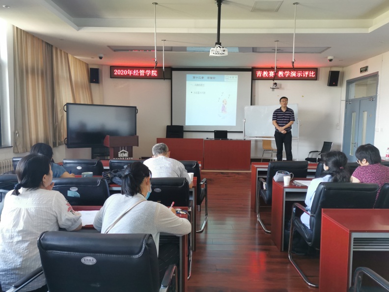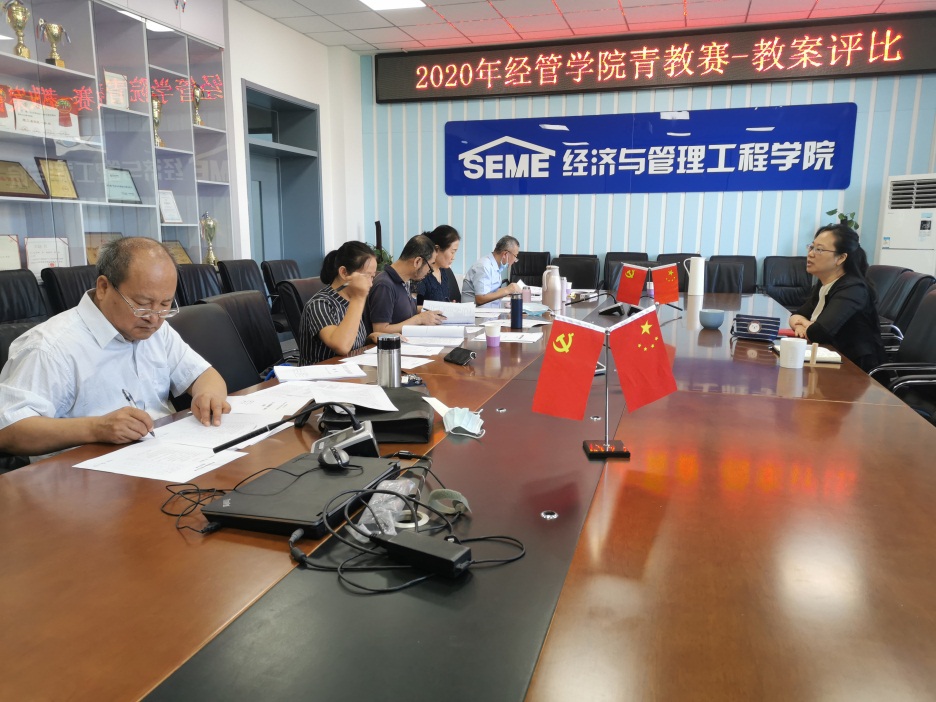 2020年9月8日上午,首先举行青教赛教案评比,评审小组仔细审阅参赛教师的教案,按照学校青年教师比赛的评分细则进行打分。9月9日下午,由周霞书记主持青教赛教学演示评比环节,7位教师按照抽签顺序,每人进行15分钟的教学演示。几位青年教师讲课激情饱满,教态大方,表达生动,讲授思路清晰,突出重点,课堂气氛活跃。
