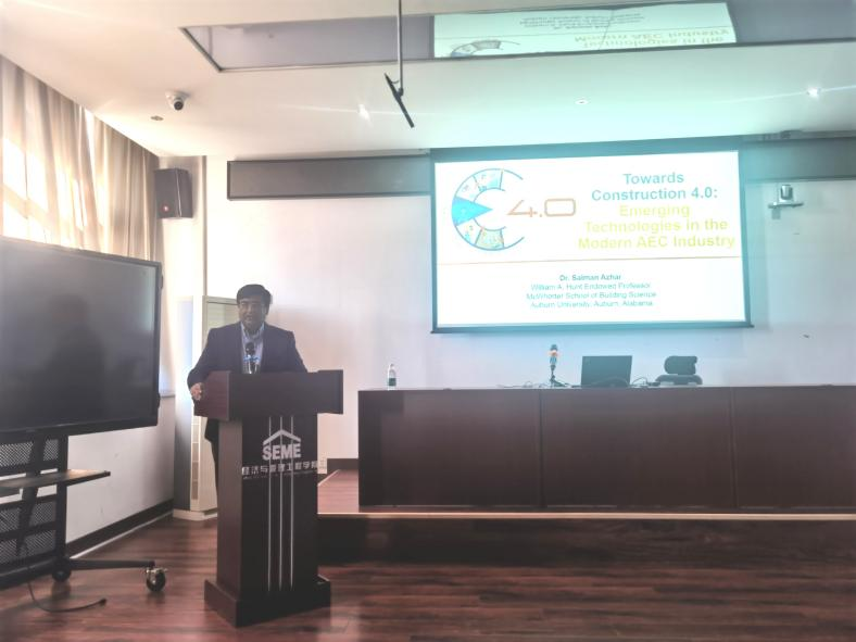 首先,Salman Azhar教授以《面向建筑4.0:建筑工程行业领先技术概览》为主题,就目前新兴建筑工程技术的发展过程与应用场景进行了详细讲解,并对建筑工程行业发展现状以及未来的发展方向与大家展开交流。