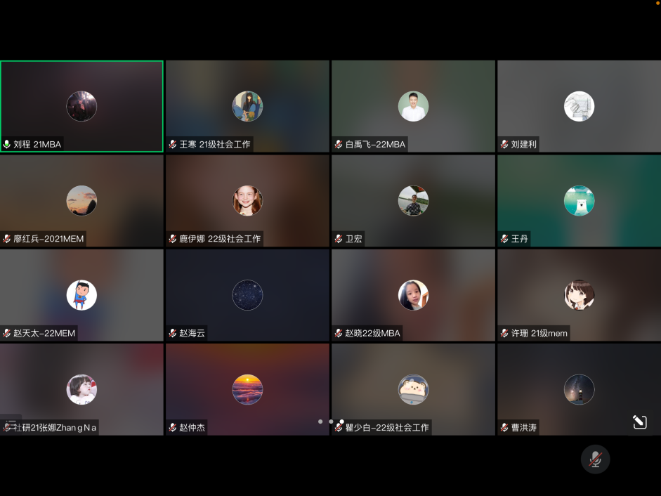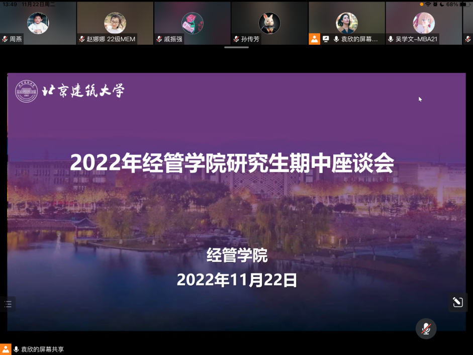 11月22日下午13:30,扑克王官网 通过腾讯会议的方式,面向工商管理(MBA)、工程管理(MEM)、社会工作(MSW)三个专业学位硕士研究生举办期中座谈会。扑克王 党委书记赵海云、副院长王丹、各专业学位负责人、研究生教务员、辅导员与十二位硕士研究生代表参加了座谈会。