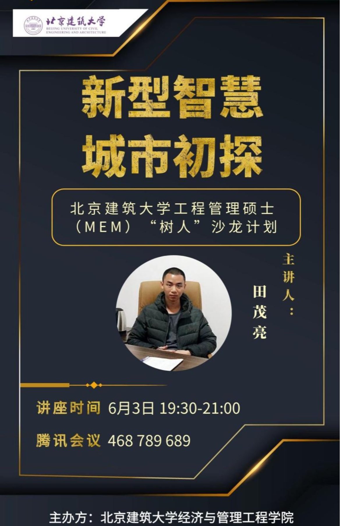 为了延续同学之间相互学习,携手共进的精神,发挥MEM学生工作经历丰富的优势,扑克王官网 MEM中心于6月3日晚采用线上视频会议的形式,成功举办了学生“树人”沙龙活动。本次沙龙由田茂亮同学主讲,主题为“新型智慧城市初探”。