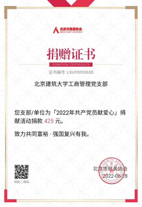 此外,支部全体党员积极参加“致力共同富裕强国复兴有我”爱心捐款活动,支部党员捐款总计425元。