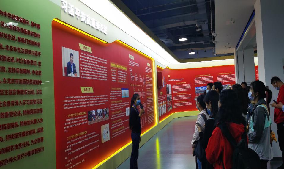 北京消费扶贫双创中心讲解员带领大家集体重温了习近平总书记关于脱贫攻坚工作重要论述,讲解了北京市对口扶贫支援情况和取得的伟大成就,带领大家参观了北京扶贫支援党建成果展览。