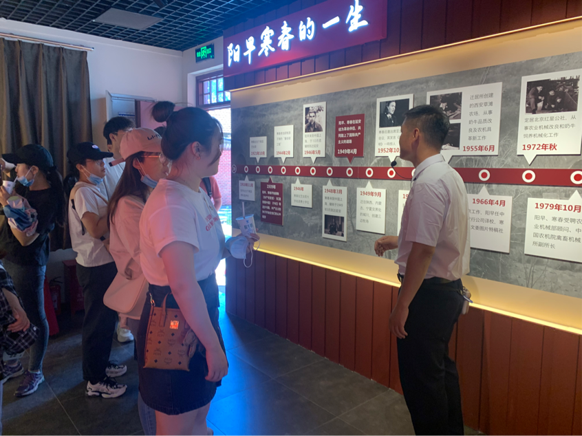 党员师生一行随后参观了阳早寒春纪念馆,了解阳早先生和寒春女士两位国际友人的生平,介绍了他们来到中国的前因后果,参加中国民主革命的历史点滴以及建国后为中国奶牛繁育改良事业做出的巨大贡献。纪念馆展厅里,一幅幅老照片记录了两位国际友人参加中国革命和社会主义建设的历程,他们一生以普通劳动者的身份工作,甚至婉拒了解放后国家优厚的待遇,把中国的事业当作自己终身的事业。在阳早寒春的故居中,师生们看到其居住房间仄小但干净整洁。废旧砖头支撑起的工作台、单人床拼接而成的大床,向人们表明了阳早先生和寒春女士艰苦朴素、勤俭节约的生活作风;一页页手绘的、栩栩如生的奶牛图纸则让大家看到了两位老人一丝不苟、务实严谨的敬业精神。