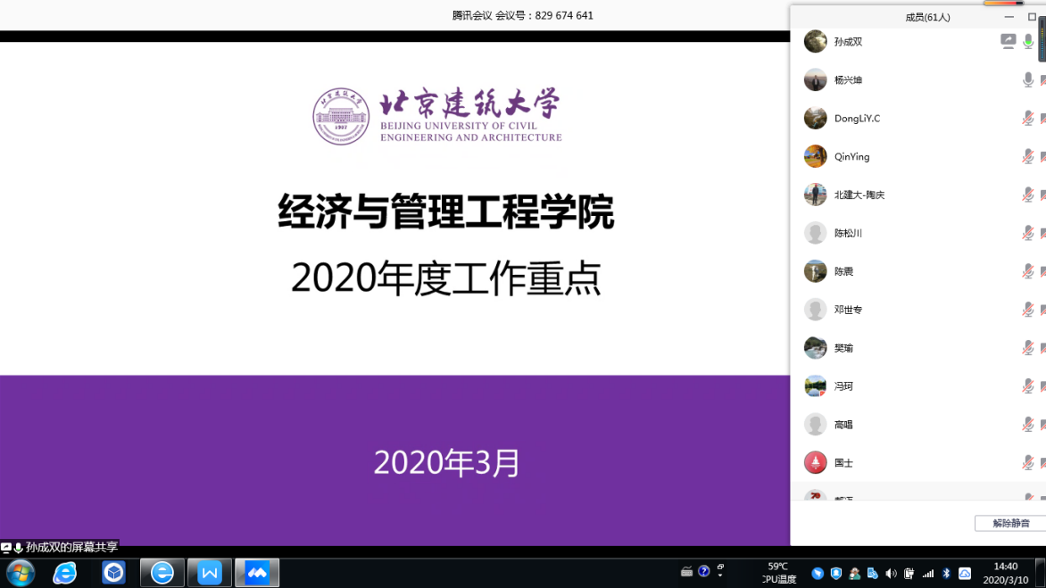 3月10日下午,扑克王官网 利用腾讯网络视频会议召开2019-2020第二学期全院教职工大会。扑克王官网 领导班子成员及全体教职工参加大会,会议由扑克王官网 党委书记彭磊主持。