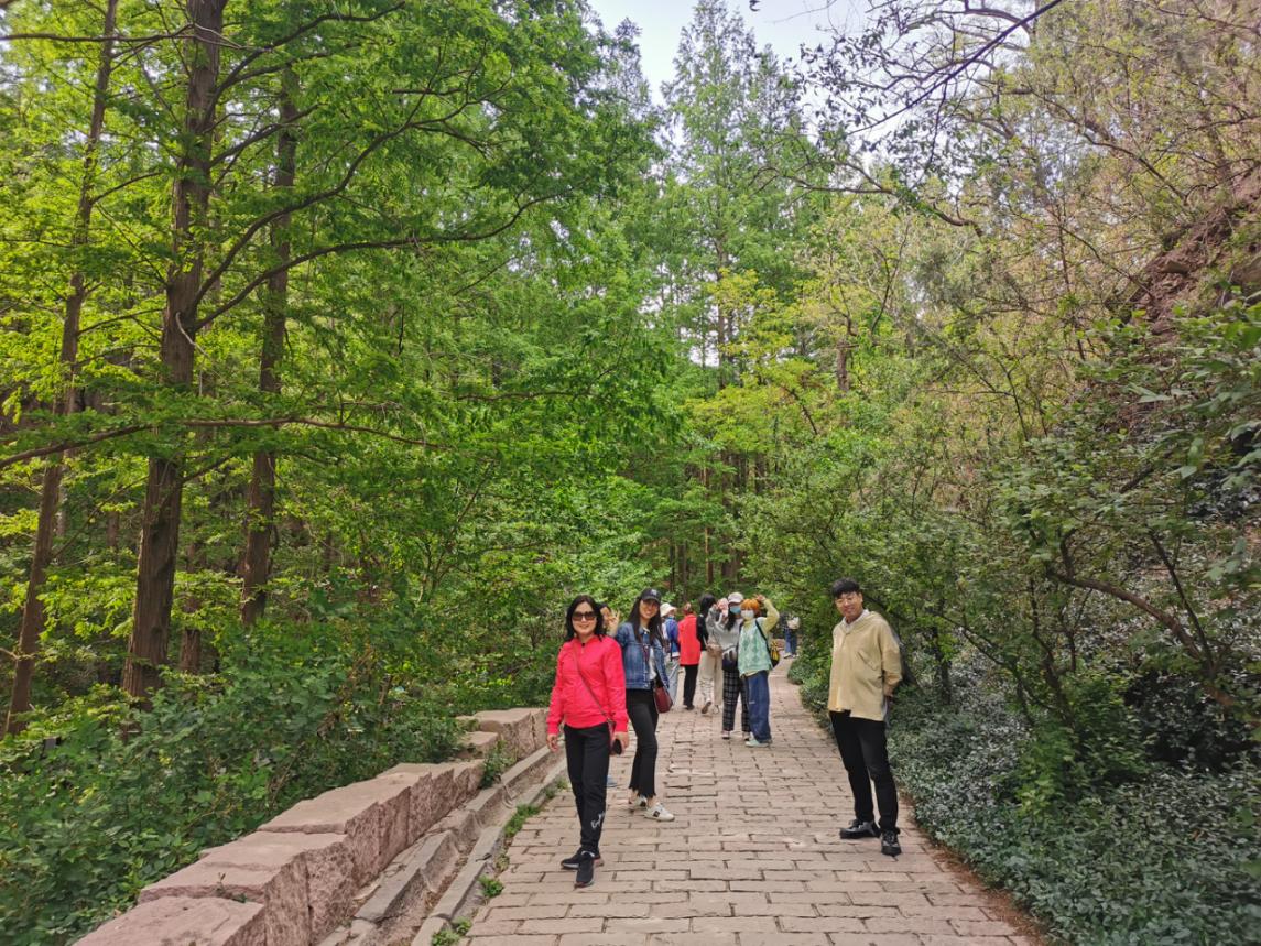 踏青的路上大家一起唱红歌,每个人的脸上都洋溢着喜悦的笑容,欢声笑语飘洒了整个行程。到达植物园后,大家沿着预先规划好的路线先后参观了曹雪芹纪念馆、“一二九”纪念亭。