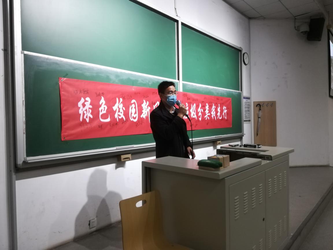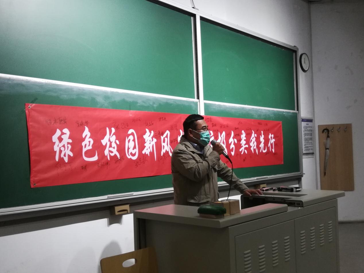 大会第一项,由后勤处副处长蔡思翔老师介绍活动情况并做指导。蔡老师指出,北京市作为全国的首都,垃圾分类势在必行。在全市全民垃圾分类的氛围下,北京市高等院校应该起到模范带头作用,积极落实垃圾分类政策。为此,后勤处也结合北京市政策和开学以来同学们提出的建议进行了一系列校园垃圾管理方式的改良。经过几个月的实践,我校垃圾分类已经逐步进入正轨,同学们也应加入到引导垃圾分类的队伍中来,以此来建设更绿色、更美化的建大校园。