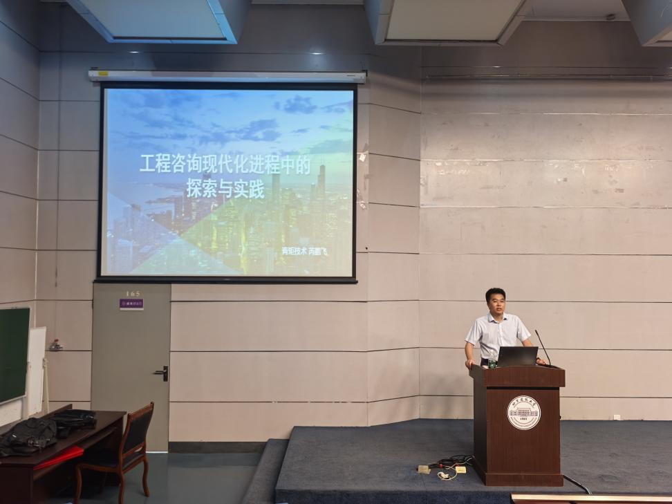 会前,芮鹏飞首先为工程管理系大一学生作了题为《工程咨询现代化进程中的探索与实践》的专题讲座。报告对工程咨询行业的全过程产业链及未来发展趋势进行了细致解读,并详细介绍了青矩技术股份有限公司的发展战略、产品布局及组织发展计划。讲座内容丰富、深入浅出,不仅帮助学生深入理解了工程咨询的多元内涵,更激发了他们对专业学习的浓厚兴趣与热情。