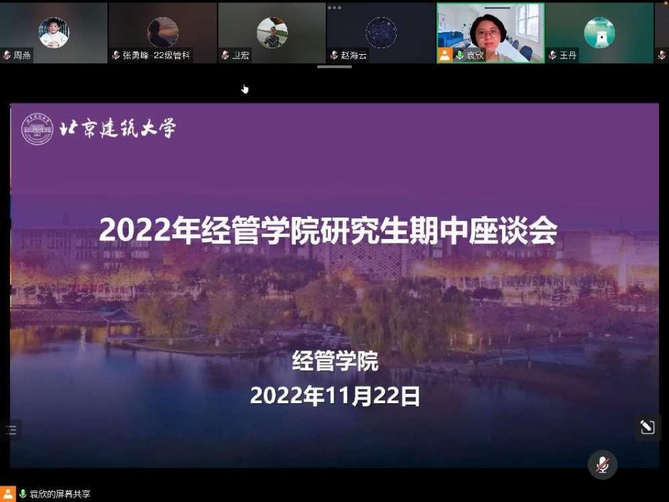 11月22日上午9点,扑克王官网 通过腾讯会议的方式,面向管理科学与工程和工商管理两个学术型硕士专业举办研究生期中座谈会。扑克王 党委书记赵海云、副院长王丹、研究生教务员、辅导员与十二位硕士研究生代表参加了座谈会。