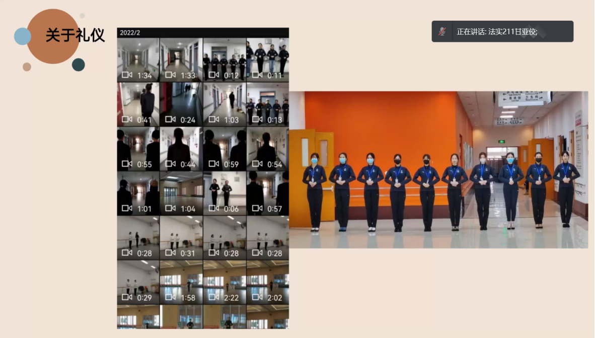 礼仪、法实211班的甘亚佼分享了一名礼仪三个多月来平凡而不凡的日常。十四名礼仪,参与演出的三个环节(新当选委员为志愿者献花、交接旗仪式、致辞)。无数次的微笑,端正仪态,三个方案六个改版,从惨不忍睹到FM里导演的一句肯定,“也谢谢礼仪小姐,你们同样奉献了精彩的表演......”,偶遇外国运动员时他们激动地赞美,“You are beautiful amazing excellent......”,下场后友人们私信的一张张的视频截图、电视屏幕照片,长辈由衷地骄傲“非常完美”,她们从无到有,落落大方。