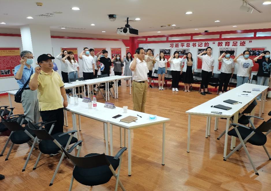 教师代表寄语后,全体党员同志在张庆春老师的带领下重温了入党誓词,会议在响亮的宣誓声中圆满落幕。