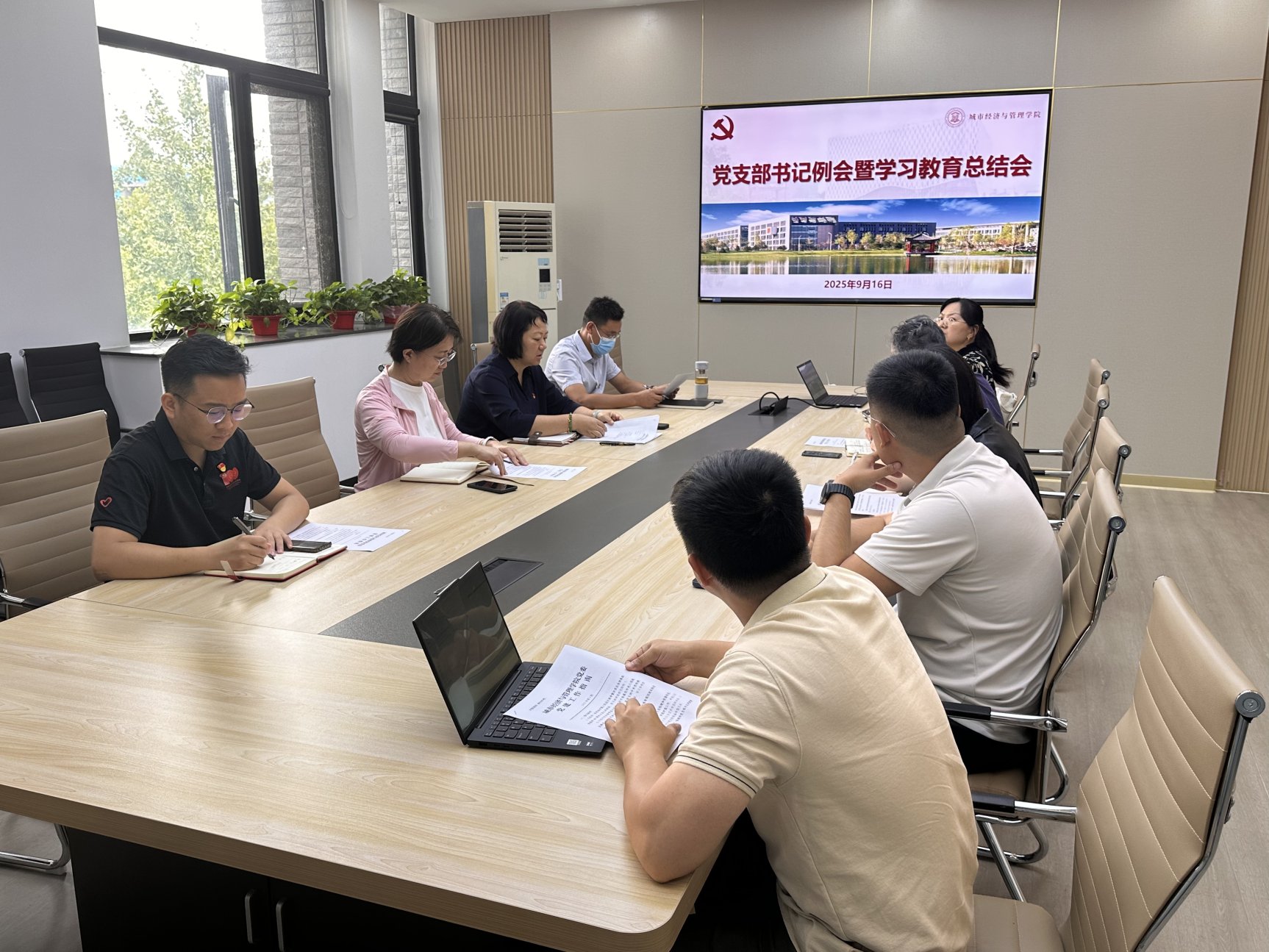 会议还就多项近期党建重点任务作出部署:一是全力推进教育部第五批新时代高校党建“双创”申报工作;二是严谨开展2025年上半年教学科研一线教师党支部书记考核工作;三是精心组织“铭记历史 砥砺前行”主题党日活动;四是规范做好新生组织关系转入和2025届毕业生党员组织关系转出;五是抓实“党建基础数据管理系统”日常维护与数据更新;六是有序推进2024/2025学年师德考核工作。