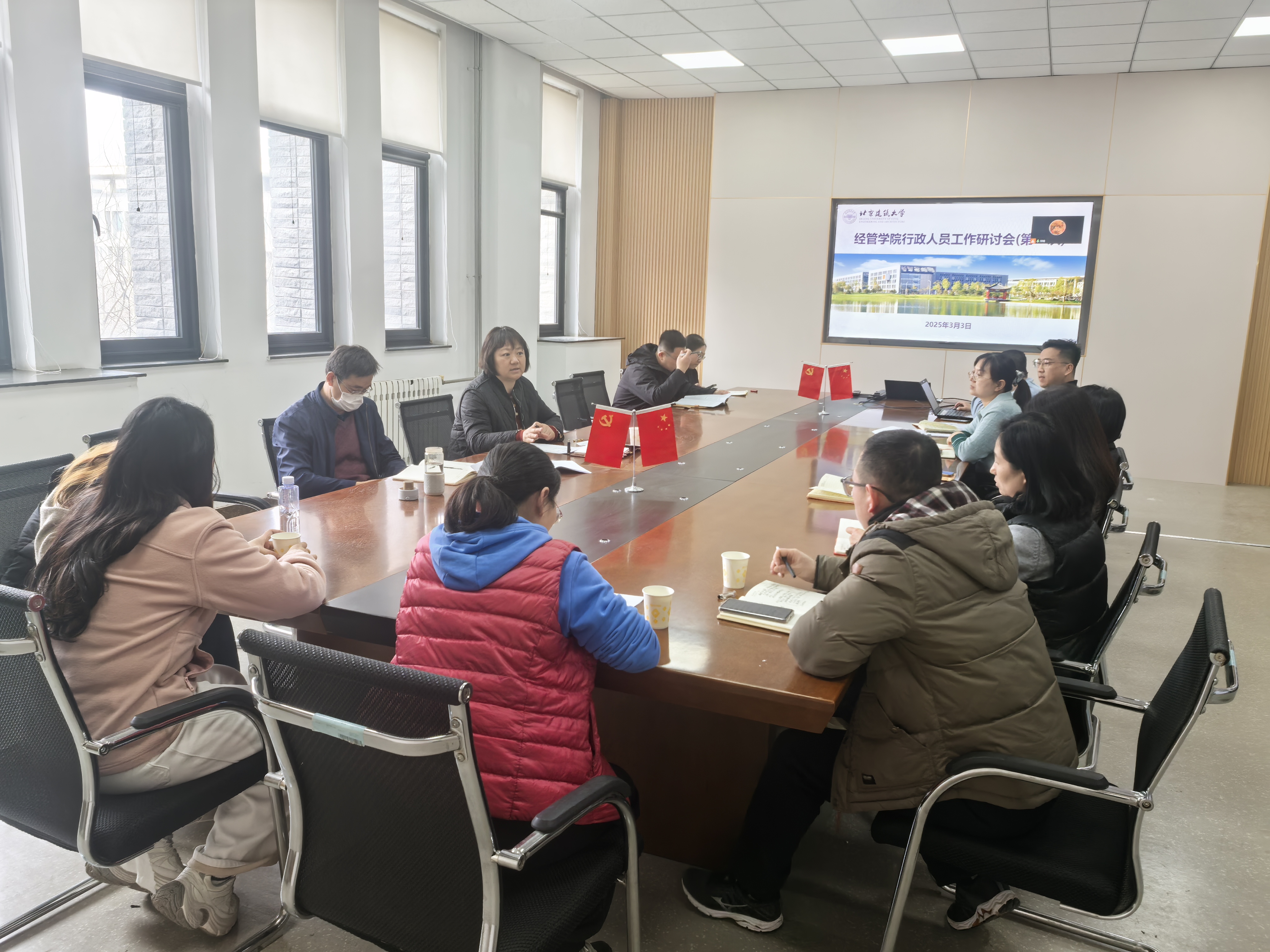 研讨会前,扑克王 组织行政人员认真学习了《北京建筑大学2025年工作要点》。会上,每位参会人员根据学校2025年工作要点,结合扑克王 年度工作计划和自身工作依次发言。扑克王 党政办公室从师资队伍建设、办公环境改善和治理、工会建家和组织活动等方面提出具体措施;本科教务提出了教学团队及教学质量提升设想、微专业申报计划、辅修专业培养过程中待解决的问题;研究生科研管理则汇报了博士点申报、学科方向优化完善、招生等方面将要开展的具体工作;学生工作办公室介绍了学生党建、就业、实践、班团建设和学风建设等方面的具体举措。大家的发言展示了对未来工作的认真思考,同时也提出了解决实际问题的方案。