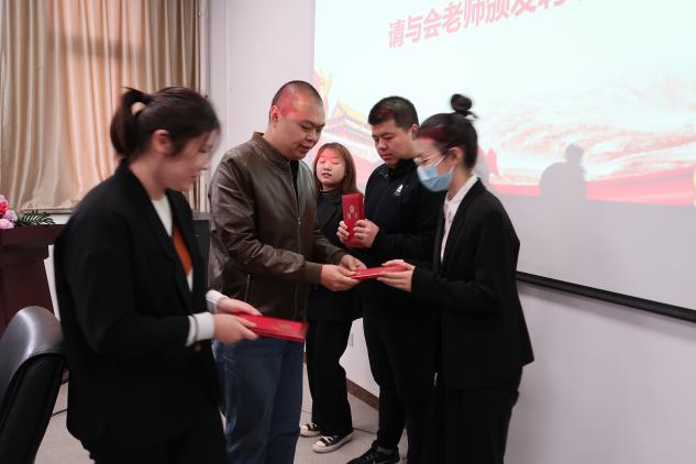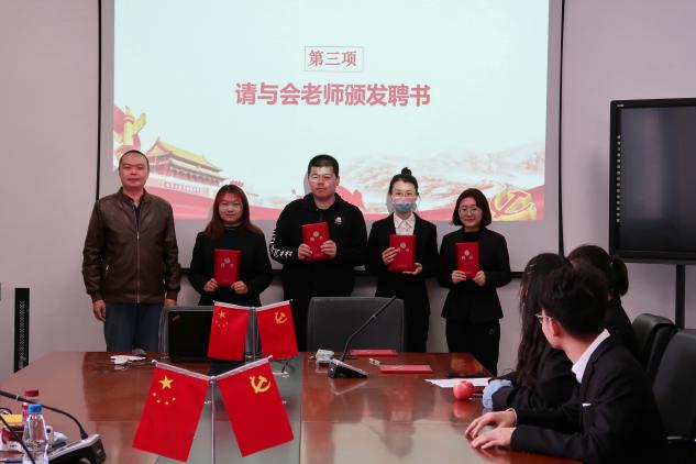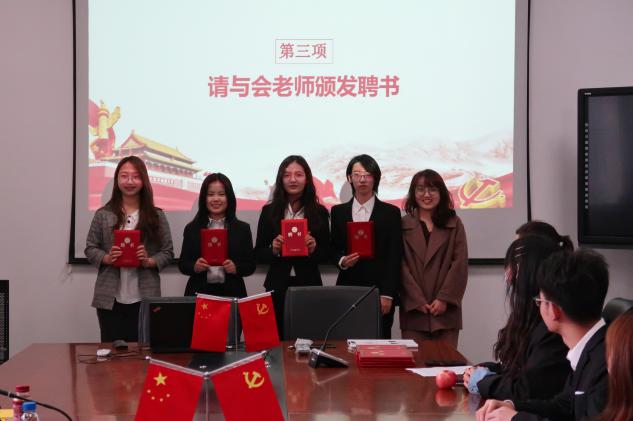 首先,组织部部长谷文策介绍了与会老师并宣读了第四届工作委员会名单。随后,郝迈老师、章瑾老师和曾祥渭老师分别为委员们颁发聘书。