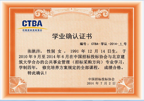 学业确认证书是我校与中国招标投标协会联合培养学生的重要成果,标志着学生毕业时达到了中国招标投标协会认可的专业知识和能力水平。行业协会为高校毕业生做学业确认,全国尚属首例,是高校为行业输送有用人才有序化、正常化、规范化的重要标志和体现。目前,中国招标投标协会正在面向其会员单位对我校学生进行就业推介,为企业输送符合行业专业要求的应用型人才。对于我校毕业学生来说,获得证书,有效增加了在招标投标行业的就业机会和就业质量。实现双赢。