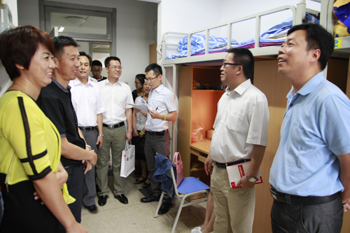 报到当天下午扑克王 领导陪同校领导查看扑克王 新生宿舍