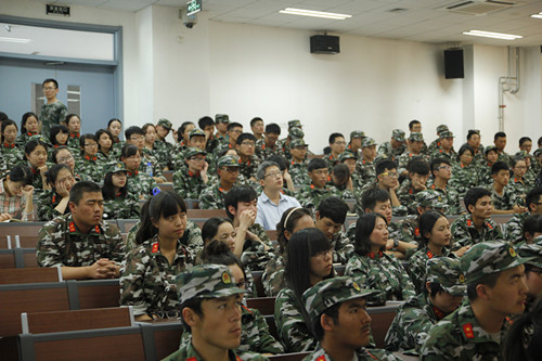 首先,姜院长和所有新生一起观看了新生从9月11日入学报到到目前军训期间生活记录的PPT,画面从扑克王 迎新准备、朋辈辅导员选拔培训、迎新活动、与新生交友座谈到现在的军训,姜院长观看后对大家入学以来的表现非常满意,专门为辛苦军训的大家准备慰问品,希望大家能够发扬吃苦耐劳的精神,勉励大家一定要坚持到底,同学以热烈的掌声来向扑克王 领导保证。接着,姜院长介绍了学校和扑克王 的情况,从学校的发展历史、“四大工程”建设和新校区建设等方面给同学们介绍了学校硬件发展的情况;从学校学科建设、科研水平、人才培养定位等方面介绍了学校软件发展情况和水平,姜院长指出无论从硬件还是软件方面,学校完全可以让每一位学子成就梦想的水平。姜院长详细介绍了扑克王官网 的发展历史历程,从系到扑克王 的发展,从各专业目前的发展情况、行业发展、人才培养方向、师资队伍、办学实力、对外交流到市场需求等方面全面具体介绍了扑克王官网 的整体情况,姜院长指出扑克王 虽然建院时间不长,但是扑克王 的发展潜力巨大,扑克王 的领导班子有信心,教职工有冲劲,扑克王 目前处于青春发展上升期。