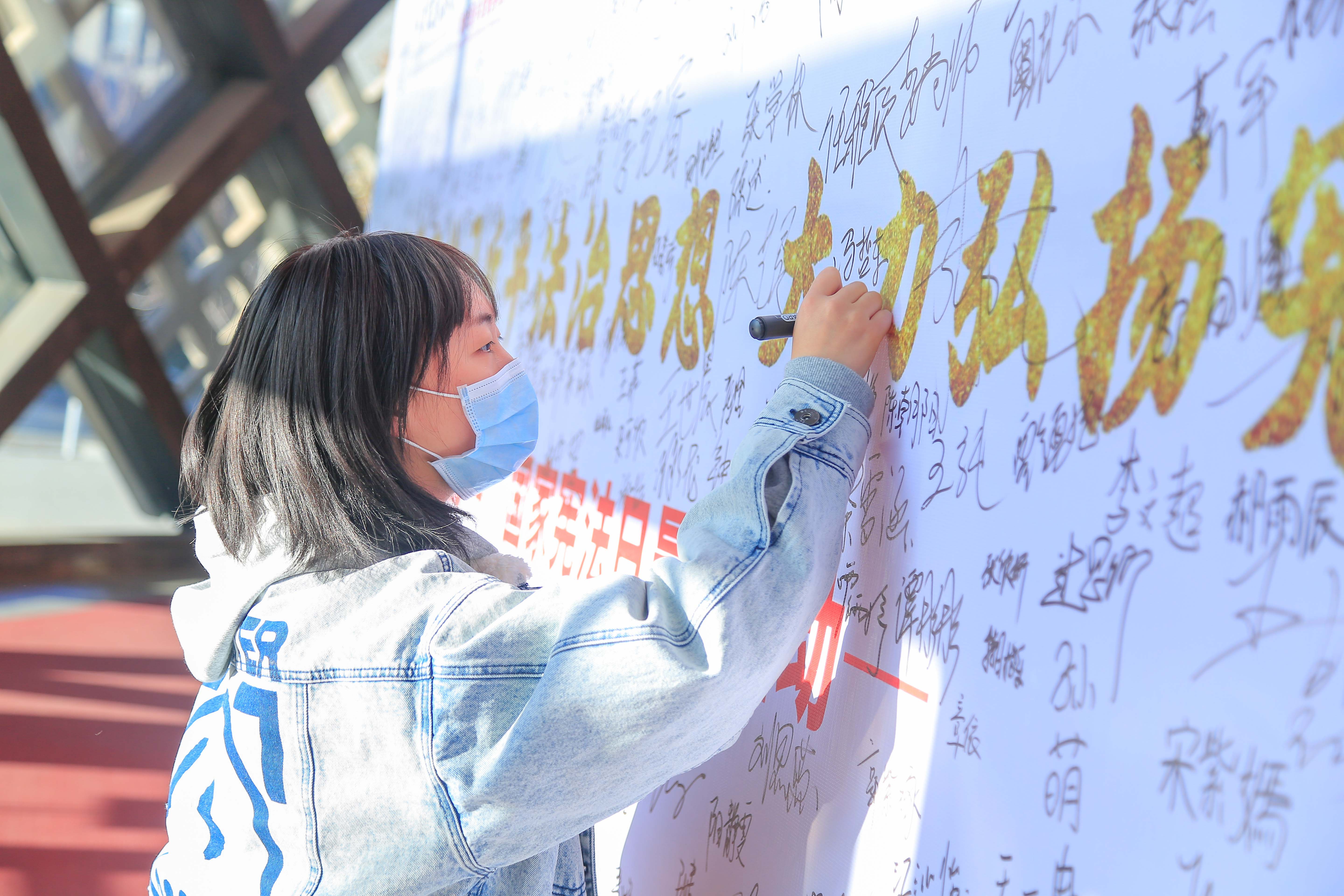 活动前,与会师生在活动签名墙上郑重地签下自己的名字,表达自己尊崇宪法、捍卫宪法权威的承诺和决心。