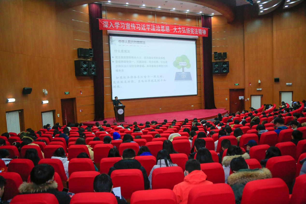 12月4日,在第七个国家宪法日来临之际,我校在基础楼A座报告厅开展“深入学习宣传习近平法治思想,大力弘扬宪法精神”“12·4”国家宪法日晨读活动。师生齐聚一堂,共同诵读宪法,集中宪法宣誓,用宪法宣誓的仪式感塑造宪法信仰,进一步营造庄严浓厚的尊崇宪法、学习宪法氛围。党委常委、文化发展研究院院长孙冬梅,党校常务副校长程士珍,扑克王官网 院长孙成双以及扑克王官网 、测绘扑克王 、理扑克王 师生代表共计三百余人参加此次活动。活动由扑克王官网 党委书记周霞主持。
