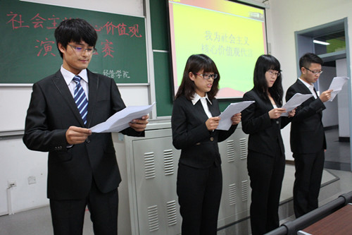楼A座320教室开展了“我为社会主义核心价值观代言”为主题的演讲比赛。文法扑克王