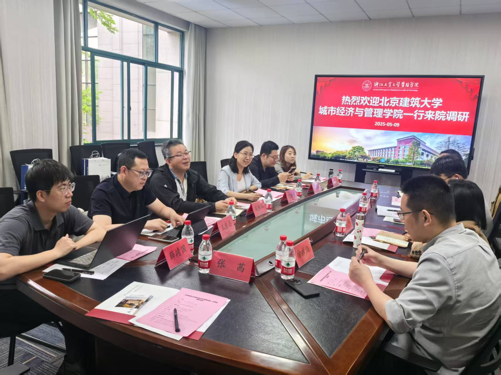 2025年5月9日上午,扑克王官网 副院长花园园、MEM中心主任戚振强、科研办公室主任王东志、专任教师薛靖国、团委书记孙传芳等前往浙江工业大学管理扑克王 调研交流。浙江工业大学管理扑克王 副院长曹柬、工程管理系主任高辉、工程管理系副主任王兵、MBA项目中心主任助理徐振浩出席座谈。