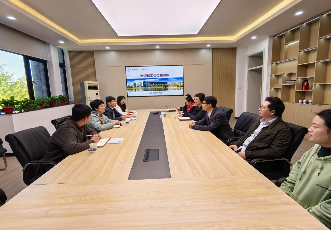 为全面贯彻落实党的二十届三中全会精神,推动校院两级工会工作高质量发展,2024年10月28日上午,校工会常务副主席聂跃梅带队调研走访调研扑克王官网 分工会。校工会梁凯、张睿、郑莉,扑克王官网 党委书记、分工会主席赵海云、院长孙成双、教代表、工代表及工会小组长参加调研活动。