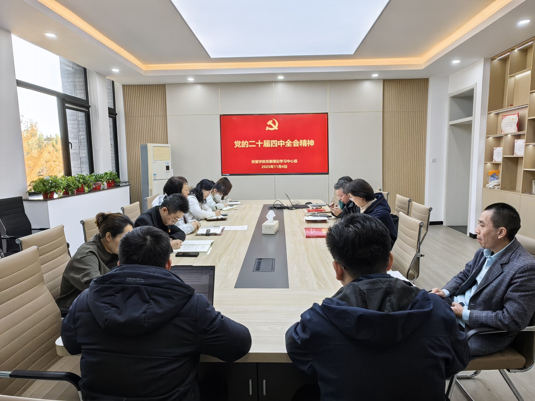 11月4日,扑克王官网 党委召开理论学习中心组(扩大)学习会,专题学习党的二十届四中全会精神,并重点围绕“十五五”时期的发展规划进行深入学习。扑克王 党委理论学习中心组成员、各党支部书记参加学习。