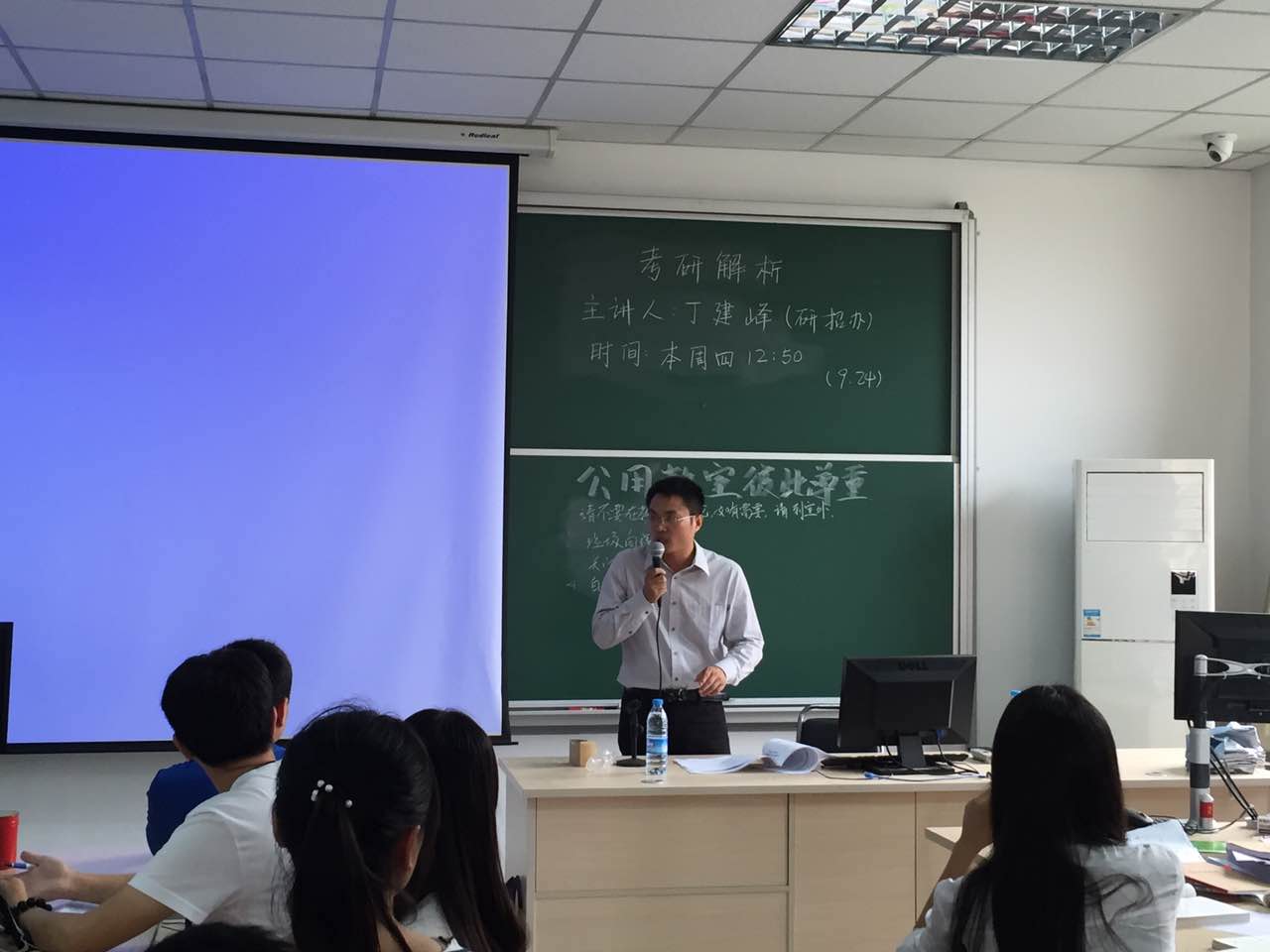 为了使考研的学子们在即将到来的研究生考试报名中夺得先机,更加准确有效的理解招生大纲和各种报考信息,扑克王官网 专程邀请校研招办丁建峰老师于2015年9月24日下午,在大兴校区学A204(扑克王官网 考研自习室)举办了2015年考研报名指导讲座。参与讲座的还有扑克王官网 就业辅导员左一多老师以及扑克王官网 准备参加2015年考研报名的考生们。