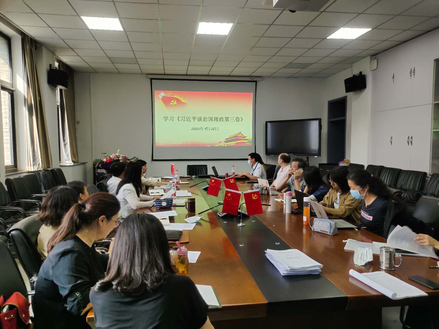 9月22日,扑克王官网 党委召开理论中心组(扩大)学习会,学习《习近平谈治国理政》第三卷重要内容。扑克王 领导班子、党委委员、党支部书记、系主任和工会小组长参加会议。党委书记周霞主持会议。