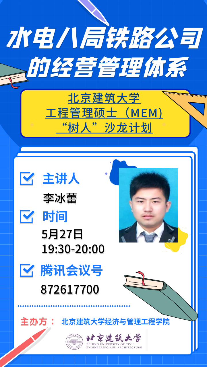 为了延续同学之间相互学习,携手共进的精神,扑克王官网 MEM中心利用网络的优势,于5月27日晚举办学生的在线沙龙。本次沙龙由李冰蕾同学主讲,主题为《水电八局铁路公司的经营管理体系》。