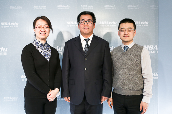 合影留念(自左往右:刘建利副主任、姜军院长、中国MBA教育网总监张晶波)