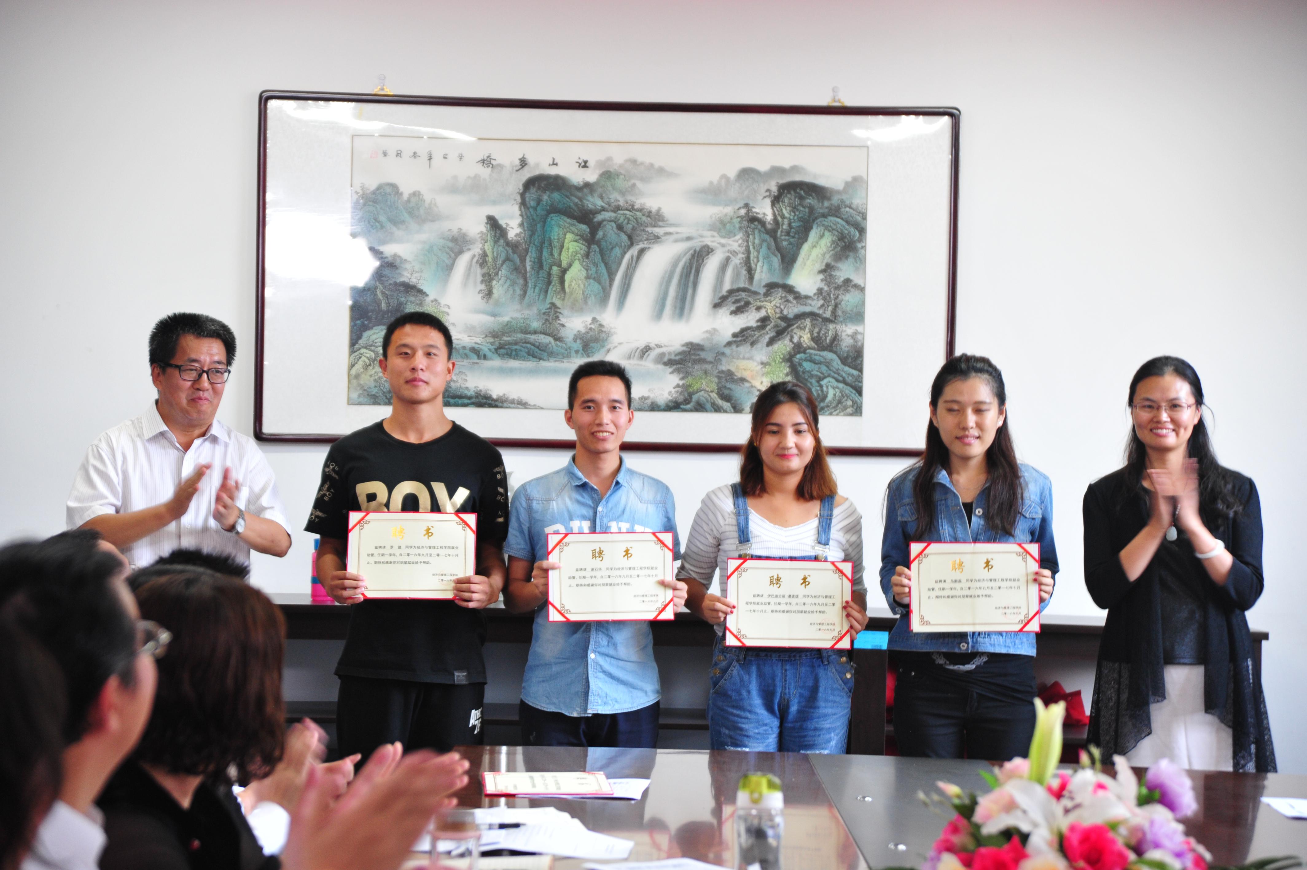 会议伊始,姜军院长宣读了“扑克王官网 成立就业工作领导小组并聘任2017届毕业生就业导师及助管的决定”,为顺利落实2017届毕业生就业的相关工作,由院领导班子牵头成立扑克王官网 就业工作领导小组。特聘2013级班级导师卢彬彬、彭斌、章瑾、赵金煜、刘玥、邓世专、严波、郑宪强、研究生教务王东志九位老师为经济与管理工程扑克王 就业导师,聘马新蕊、伊巴代提古丽·塞麦提、罗健、谢石华四位同学为就业助管,聘期为一学年。姜军院长及彭磊书记共同为九位就业导师和四位学生就业助管颁发聘书。