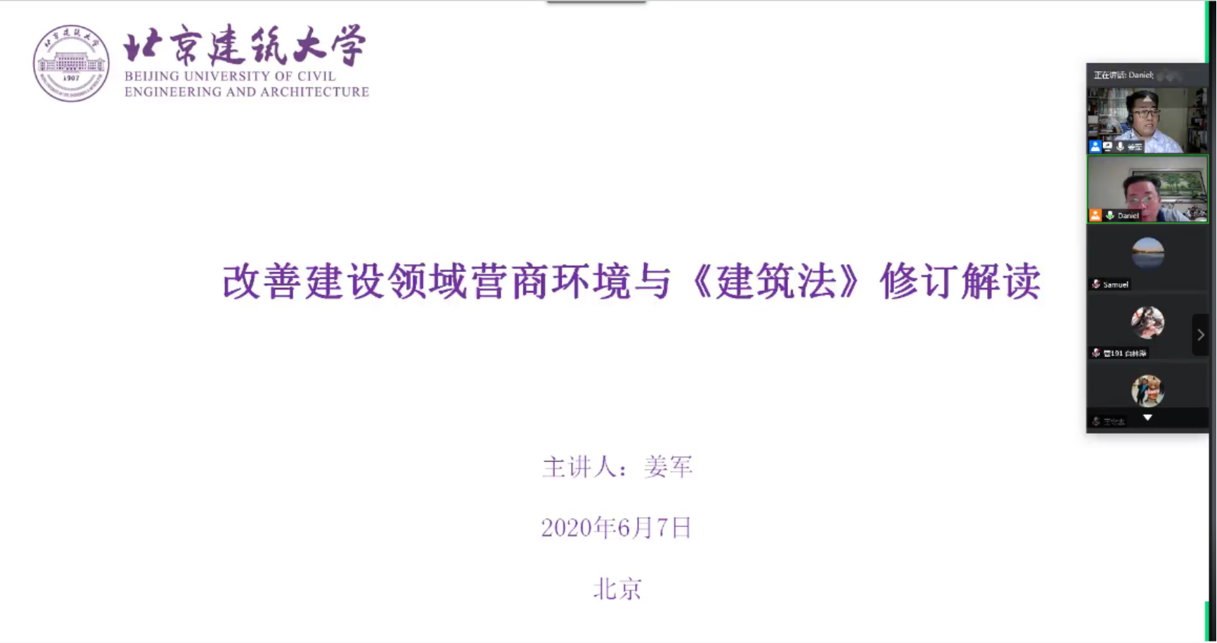 为了拓宽MEM专业学生知识面,提升工程管理学术水平,了解建设领域最新政策和发展,6月7日上午,扑克王官网 MEM中心继续举行了学科前沿与热点问题线上学术讲座。本次讲座由扑克王官网 姜军教授主讲,主题是“改善建设领域营商环境与《建筑法》修订解读”,MEM中心主任戚振强副教授主持。MEM专业全体同学准时参加学术讲座,还有 60余名合作单位人员、老师、本科生和研究生慕名旁听。
