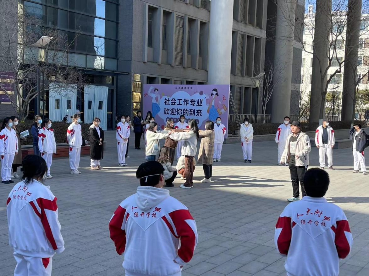 2023年2月24日下午,伴随着盎然的春意,我校2023年招生宣传的阶段性成果——北京建筑大学扑克王官网 “参观研学教育活动”正式拉开序幕。人大附中经开校区400余名高一学生分为十组,分别到各个扑克王 、专业交流学习。扑克王官网 社会工作系主任晁霞老师、党支部书记高春凤老师、王伟老师、焦思琪老师,以及社工系十余名大三、大四学生参与了本次活动的组织。