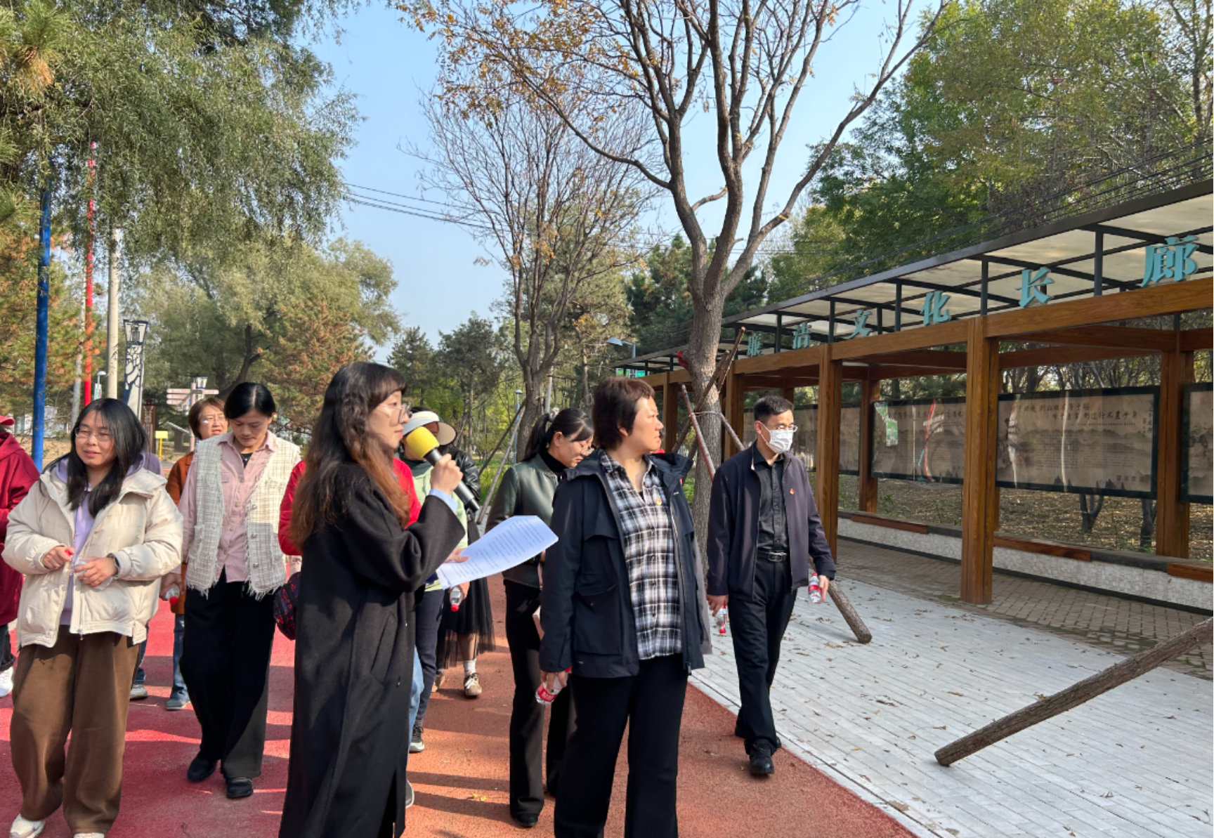 大兴区廉洁文化主题公园位于清源公园内,以出自《荀子•君道》的“源清流洁”为主题标志,从廉洁文化历史典籍、《习近平用典》谈廉洁到习总书记系列讲话,从代表人生的“少年、青年、中年、老年”四个时段的廉洁步道回归到家庭家风的建设。大家随着讲解员的讲解,一起参观了廉政步道、廉政文化长廊、廉政主题牌、廉政主题雕塑和廉政景观小品,感悟人生、家庭、社会的廉洁之道。