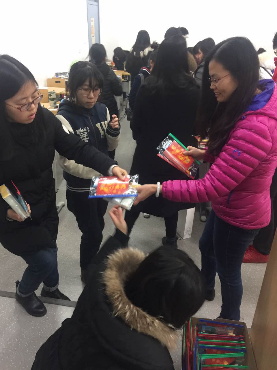 2016年12月21日下午14:00在扑克王官网 考研教室,扑克王官网 党委书记彭磊、副院长周霞、2013级辅导员章瑾老师代表扑克王 慰问周末参加考研的扑克王 应届毕业生,给备战学子集中发放扑克王 为考研学子准备的标准考务袋和洗漱套装,给大家加油打气,送上祝福。