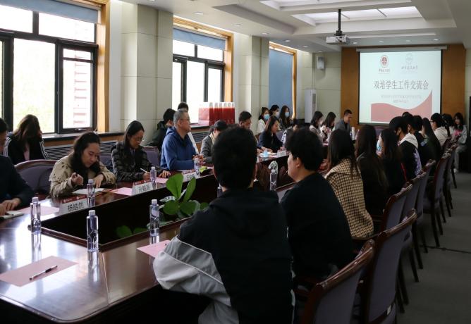 党委副书记王彤、教学科研办公室主任、分团委副书记、双培班主任和辅导员等,以及在政法大学参加“双培计划”学习的31名学生参加共同参加会议。