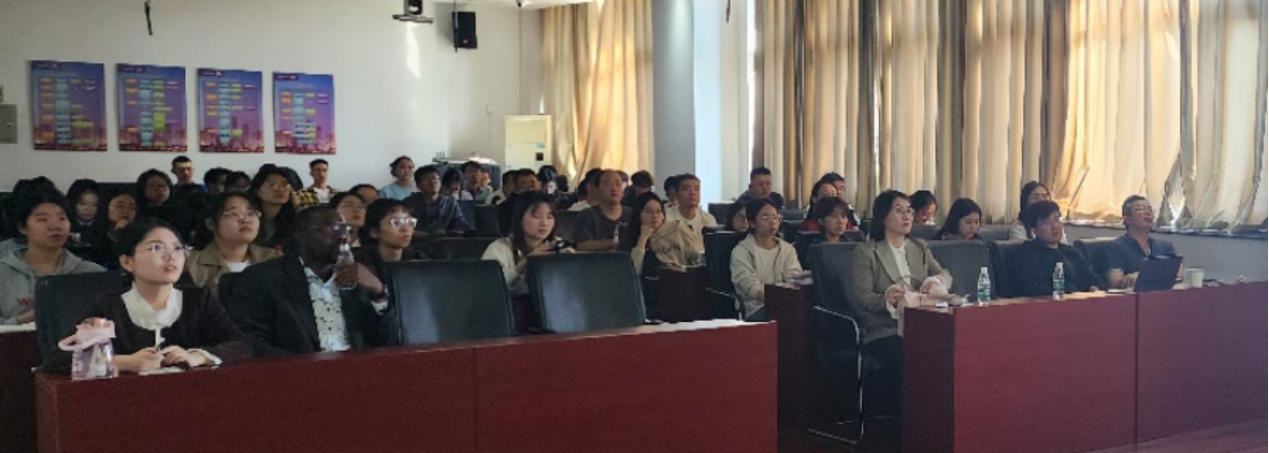 研究生参加讲座,由秦贝贝老师主持讲座。
