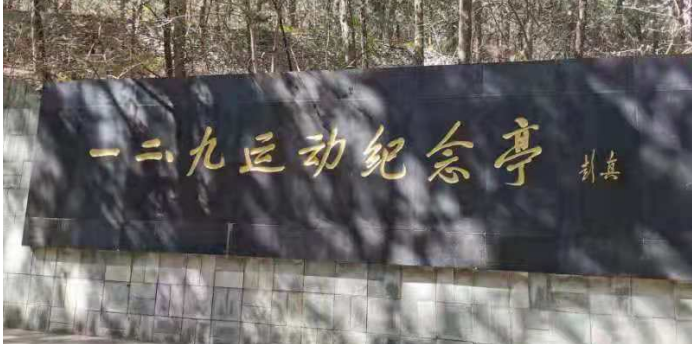此次目的地在植物园的深处距离下车地点路途较远,但这并没有阻止党员们的学习的热情,反而是道路两旁随处可见的花海为旅途增添了许多乐趣,不知不觉我们就到达了此行的目的地一二九运动纪念亭。