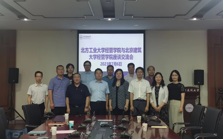 2023年7月6日,北京建筑大学扑克王官网 与北方工业大学扑克王官网 关于本科教学审核评估进行了交流座谈会。北京建筑大学扑克王官网 院长孙成双、党委书记赵海云、教学副院长张丽、工商管理系主任卢彬彬、工商管理系副主任邓世专、教务办李佳冰参加座谈会。北方工业大学扑克王官网 院长赵继新、党委书记王伟宾、副院长孙强等8位教师参加座谈会。