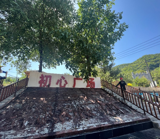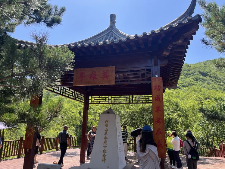 首先,大家来到了“初心广场”,聆听了妙峰金顶“救命松”的由来。广场内的大型浮雕“救命松”记录了京西革命史上第一位烈士-赵万庆(土生土长的妙峰山人)与时任国民抗日军一总队队长的纪亭榭将军在妙峰山金顶发生的战斗故事。