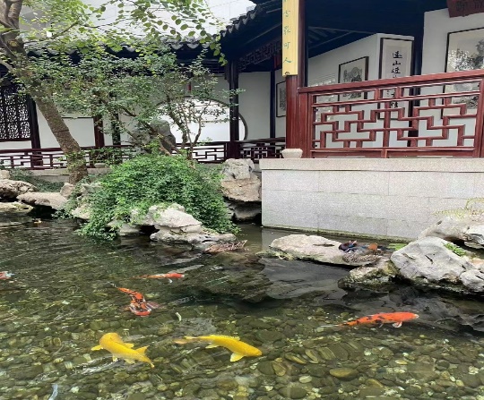 中国建筑博物院的室外展区也吸引着同学们进一步驻足游览,中国知名园林在这一方天地中被形象生动的还原,古典园林的元素随处可见,一湾池水好似水墨画中的“留白”,水中倒映出建筑清晰的轮廓,笔断意连、延伸无穷,步入其中,仿佛置身于古人的私家园林之中。园中建筑极具地方特色,典雅大气。