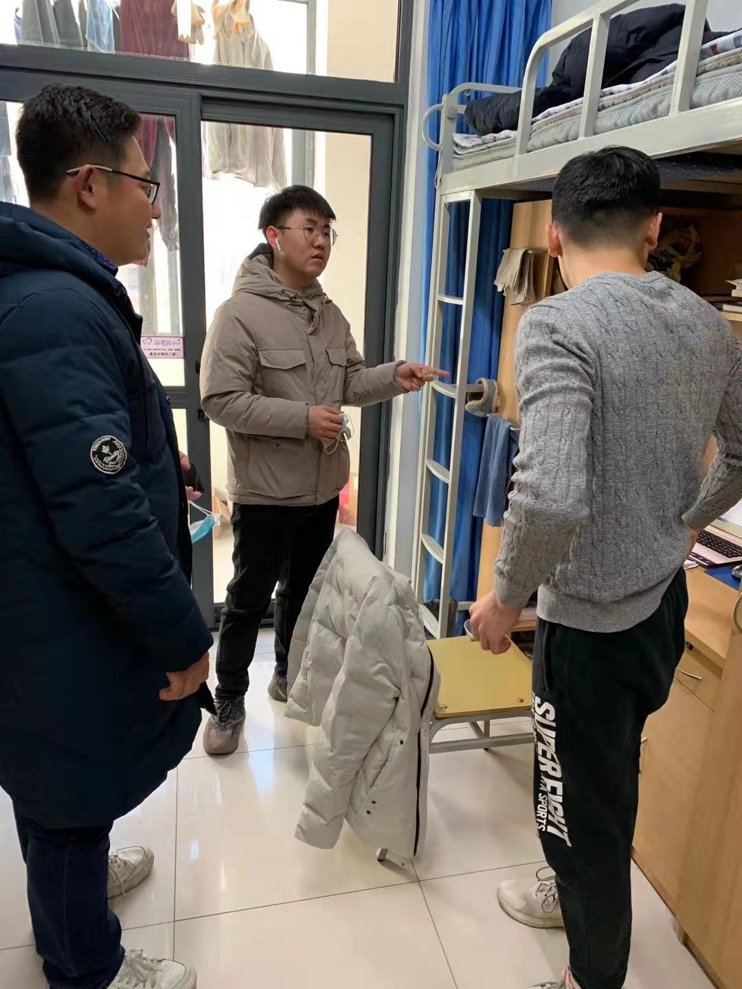 为贯彻落实学校疫情防控工作、保障全体师生生命健康安全、维护校园安全稳定的要求,12月31日下午,扑克王官网 各年级辅导员老师深入宿舍同留校学生进行交流并开展安全卫生检查,范围涵盖扑克王官网 在大兴校区的所有年级。
