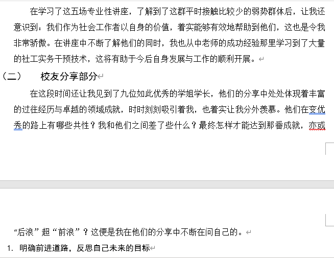 经过两个星期的学习,学生普遍反馈,通过了解这些弱势群体,不但增进了对这些弱势群体的理解,学到了一些干预方法,也感受到了作为社会工作者的价值,增加了对社会工作的认同感!通过与毕业生的交流,学生们进一步反思了自己的未来发展方向,并且决定要踏踏实实努力,让自己变得更优秀!