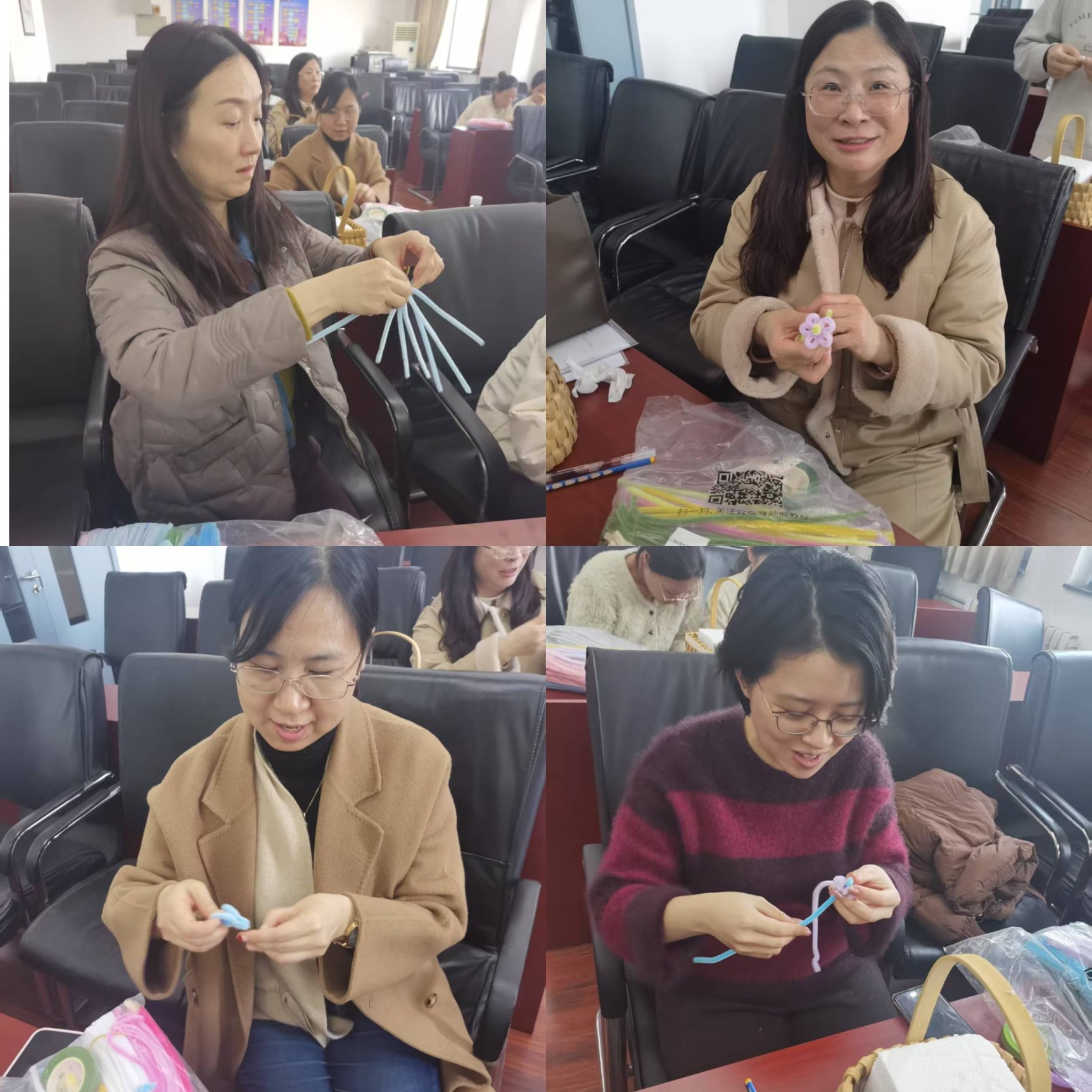 活动在一篮精美的插花作品展示中拉开帷幕。随后,高唱老师、张茜老师分别为大家讲解扭扭棒鲜花的制作过程,从弯曲塑形,到颜色搭配,再到拼接组合,一边操作演示,一边耐心答疑。女教工们跟随指导,将扭扭棒弯成花瓣、花枝、花朵,色彩缤纷、形态各异的扭扭棒花束在一双双巧手下逐渐诞生。